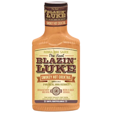 De Blazin' Luke is een pittige cocktailsaus met subtiele rooksmaak en een pittige bite door de cayennepeper. Een topper voor hamburgers. The Real American BBQ Sauces by Remia: for real BBQ heroes!