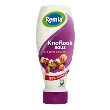 Remia Knoflooksaus is een zacht romige saus met verse knoflook.