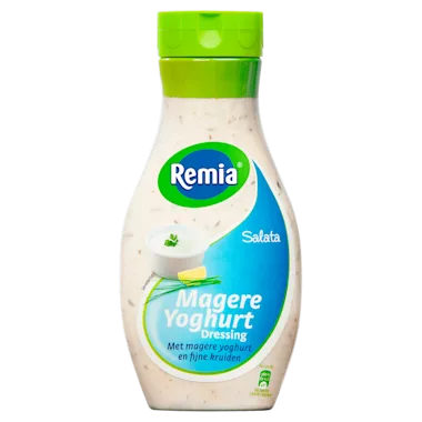 Remia Salata Magere Yoghurt is een dressing op basis van magere yoghurt en fijne kruiden voor bij de salade of rauwkost. Zonder conserveermiddelen, kunstmatige kleur-, geur- en smaakstoffen natuurlijk glutenvrij. Door onze handzame 500ml tube kunt u makkelijk doseren en wordt een optimaal smaakbehoud gegarandeerd.