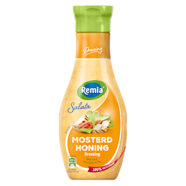 Ingrediënten: water, raapolie, suiker, natuurazijn, MOSTERD (water, MOSTERDZADEN, natuurazijn, specerijen) 7,5%, dille 2,8%, gemodificeerd maiszetmeel, vrije uitloop EI en EIGEEL, zout, honing 1%, citroensap, MOSTERDMEEL, specerijen, natuurlijk aroma, voedingszuur: melkzuur, verdikkingsmiddel: guarpitmeel, conserveermiddel: kaliumsorbaat, kleurstof: betacaroteen, antioxidant: E385.