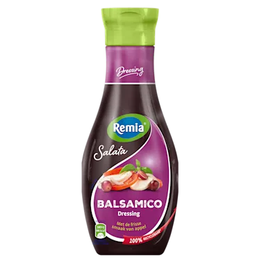 Ingrediënten: water, balsamico azijn 30%, suiker, raapolie, appelsap 4,2%, gemodificeerd maiszetmeel, appelpuree 0,9%, zout, natuurlijk appelaroma, verdikkingsmiddel: xanthaangom.