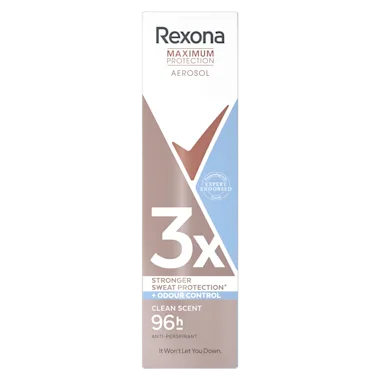 Rexona Women Maximum Protection Clean Scent Anti-Transpirant Spray is een anti-transpirant die speciaal is ontwikkeld om een zeer krachtige bescherming te bieden aan iedereen die het nodig heeft. Dankzij de langwerkende formule ben je tot 96 uur lang beschermd tegen overmatige transpiratie en lichaamsgeur. De anti-transpirant biedt drie keer meer bescherming dan onze reguliere anti-transpirant deodorant. Het is effectieve bescherming met een frisse geur, geschikt voor dagelijks gebruik. Verleg je grenzen: Rexona-deodorant geeft je vertrouwen om meer te bewegen.