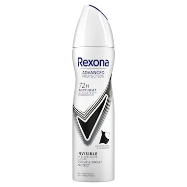 Rexona Women Advanced Protection Invisible Anti-Transpirant Spray is geformuleerd met onze beste anti-strepen formule, die 72 uur bescherming biedt tegen zweet, lichaamsgeur en vlekken op je kleding. Sommige anti-transpirant ingrediënten kunnen zich vermengen met zweet en de natuurlijke oliën van je lichaam op je kleding, wat vlekken veroorzaakt: witte vlekken op zwarte kleding en gele vlekken op wit. De alcoholvrije* Rexona Advanced Protection Women Invisible Anti-Transpirant Spray is ontwikkeld om dit te voorkomen. Het beschermt je niet alleen tegen zweet, het helpt je ook om je kleding te beschermen tegen strepen en vlekken, dus je kunt je direct na het aanbrengen klaarmaken voor de dag.