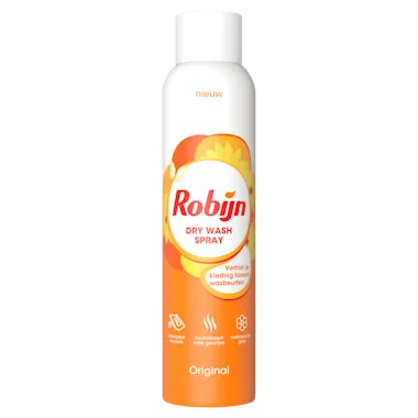 Robijn Original Dry Wash Spray geeft kleding een frisse geur tussen wasbeurten in. We kennen het allemaal: in je kledingkast op zoek naar je favoriete blouse of jurk, maar deze ligt op de stoel in je slaapkamer. Al een keer gedragen en niet helemaal fris meer, maar ook niet vies genoeg om te wassen. Zou je hem nog een dag kunnen dragen? Met Robijn Original Dry Wash Spray verfris je kleding tussen wasbeurten in. De spray verwijdert nare geurtjes, ontkreukt onmiddellijk, verzacht de stof en herstelt de vorm. Je kleren ruiken verfrist en voelen aan alsof ze net uit de wasmachine komen. Je kunt langer van je kleding genieten zonder te wassen. Bijna de helft van de kleding die we wassen is niet vuil. Daarnaast is te vaak wassen schadelijk voor je kleding en is het zonde van tijd en water.