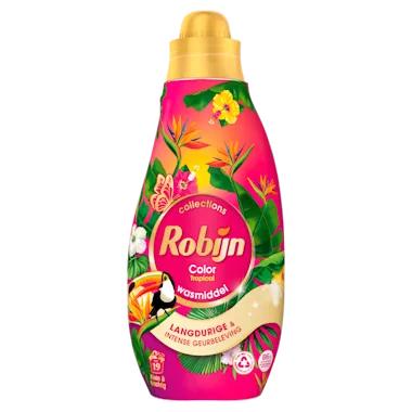 Met de geursensatie van Robijn Color Tropical Vloeibaar Wasmiddel uit de Robijn Klein & Krachtig Collections lijn kun je lang genieten van een heerlijk fris ruikende was. Dit wasmiddel is speciaal ontwikkeld voor de gekleurde en bonte was. Het wasmiddel levert uitstekende resultaten, zelfs in koude (20°C) en korte (30 minuten) wasbeurten, het laat je was heerlijk ruiken en zorgt ervoor dat kleuren lang mooi blijven. Geniet van de frisse geur van tropisch fruit met tonen van passievrucht, mango en citrus. Waan je iedere wasbeurt weer even in een tropisch paradijs.