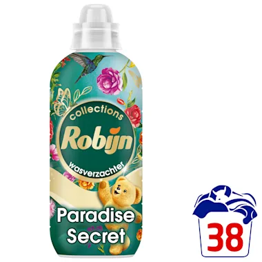 Met Robijn Collections Paradise Secret Wasverzachter geniet je van heerlijk zacht wasgoed en een intense en langdurige geurbeleving, tot wel 100 dagen fris. Ervaar een vleugje paradijs in iedere wasbeurt. Het frisse, bloemige parfum van deze wasverzachter is ontworpen door parfumexperts en is verrijkt met essentiële oliën. Deze wasverzachterlijn van Robijn is ultrageconcentreerd. Met vernieuwde formule, je hoeft slechts 20 ml i.p.v. 25 ml te doseren voor een optimaal resultaat. De wasverzachter is goed voor 38 wasbeurten, vijf extra wasjes t.o.v. onze vorige formule van 2024. Robijn houdt kleuren mooi en laat de was heerlijk ruiken.
