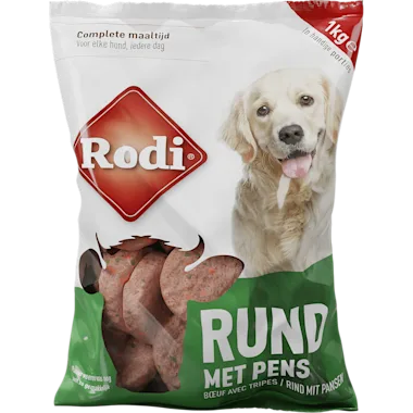 Rodi Daily Basics Rund met Pens zijn heerlijke mini-hamburgers speciaal ontwikkeld voor honden en katten. Deze complete maaltijd is rijk aan runderpens en een perfect uitgebalanceerde mix van rauw rundvlees, runderorganen, vezels en vitamines en is geschikt voor honden van elk formaat en elke leeftijd. Honden zijn dol op de grote hoeveelheid runderpens wat een échte smaakmaker is. Dankzij de handige kleine porties vul je dagelijks gemakkelijk de voerbak van je trouwe viervoeter. Rauw voeren was nog nooit zo gemakkelijk!