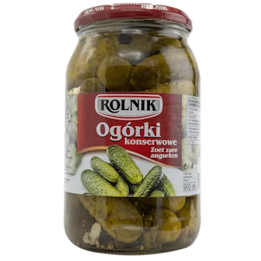 Ingrediënten: augurk, water, azijn, suiker, zout, specerijen (bevat MOSTERD zaad).