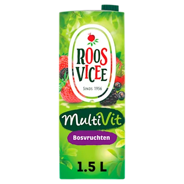 Roosvicee Multivit met de heerlijke smaak van Bosvuchten, vol vitaminen. Deze fruitdrink bevat de heerlijke smaken van zwarte bes, vlierbes, aardbei, braam en rozenbottel. Daarnaast bevat Roosvicee Multivit geen zoetstoffen of conserveermiddelen en is het een bron van 10 vitaminen.