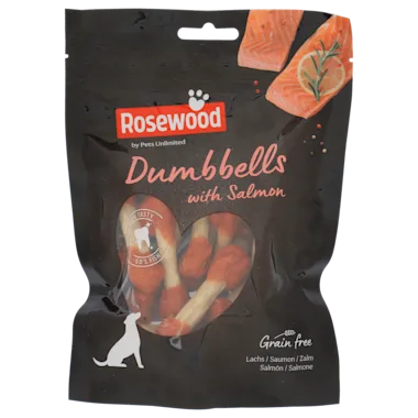 Samenstelling: zalm (60%), runderhuid, aardappelzetmeel, glycerine, sorbitol, natriumchloride (0,45%).