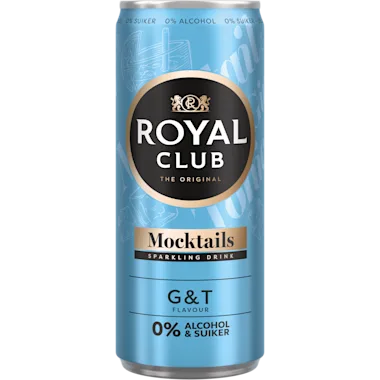 Royal Club Mocktails, G & T 0% is een verfrissende koolzuurhoudende frisdrank met de bekende Gin & Tonic smaak, maar dan zonder alcohol & helemaal suikervrij. Zo kan je dus onbezorgd genieten van de borrel met een heerlijk alcoholvrij & suikervrij alternatief.