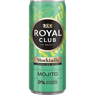 Royal Club Mocktails, Mojito 0% is een verfrissende koolzuurhoudende frisdrank met de bekende Mojito cocktail smaak, maar dan zonder alcohol & helemaal suikervrij. Zo kan je dus onbezorgd genieten van de borrel met een heerlijk alcoholvrij & suikervrij alternatief.