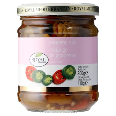 Royal Jalapeño mix is een heerlijke pittige mix met rode en groene pepers die elk gerecht een pikante bite geeft. Heerlijk op een pizza, sandwich of door de salade.