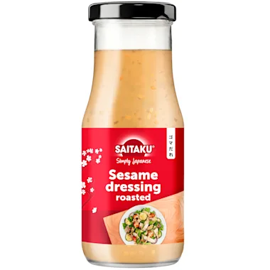 Ingrediënten: Water, canola-olie, suiker, SESAMolie, SESAMzaad 3,6%, SOJAsaus (water, SOJA, TARWE, zout), zout, azijn, shiitake poeder, gemodificeerd maïszetmeel, verdikkingsmiddel: E415, conserveermiddel: E202, EIGEELpoeder.