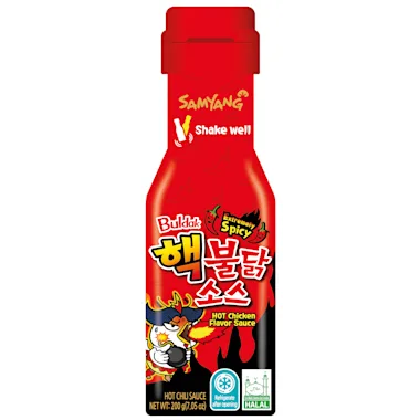 Ingrediënten: water, smaakverfijner-poeder(kiparoma, suiker, chilipoeder, gistpoeder, chilipeper, gemodificeerd aardappelzetmeel, zuurteregelaar: E330,gemalen zwarte peper, currypoeder (EI, MELK, SELDERIJ), maissiroop, SOJA-saus (water, SOJABONEN, zout, TARWE,glucose-fructose-siroop, zuurteregelaars: E500, E524, smaakversterker: E635, knoflookconcentraat), SOJA-olie, ui,chili-extract, knoflook, paprika-extract, emulgator: E471, thee catechine, dextrine.