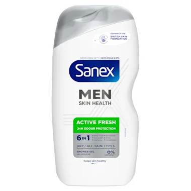 De Sanex Men Active Fresh Body Wash is een veelzijdige 6-in-1 douchegel, speciaal ontwikkeld voor mannen. Deze formule is geschikt voor gebruik op het lichaam, gezicht en haar, en kan zelfs worden gebruikt als scheergel. Het biedt niet alleen een grondige reiniging, maar hydrateert en neutraliseert ook lichaamsgeuren voor een langdurige frisheid. Deze dermatologisch geteste body wash voor de droge huid heeft niet alleen geweldige 6-in-1 toepassingen, maar respecteert ook de natuurlijke pH-waarde van je huid en bevat 0% sulfaten*.