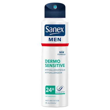 De Sanex Men Dermo Sensitive anti-transpirant is geschikt voor de gevoelige huid. De hypoallergene en anti-irriterende formule werkt actief samen met het natuurlijke proces van uw huid om :