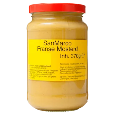 Ingrediënten: water, MOSTERDZAAD, azijn, zout, specerijen, aroma.