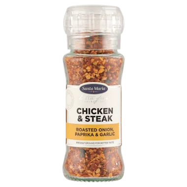 Chicken & Steak is een sappige en volle mix van knoflook en peper. Afgerond met aromatische korianderzaadjes. Een geweldige mix voor alle soorten vlees en gevogelte.