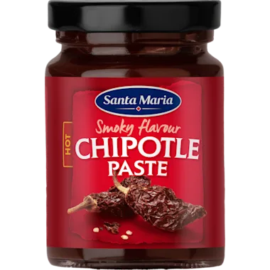 De chipotlepasta van Santa Maria met gerookte jalapeño geeft kleur en smaak aan je gerechten. Het heeft een pittige en rokerige chilismaak met hints van cacao, tomaat en tabak. Gebruik als aanvulling voor chilipoeder of chilivlokken. Deze rijke pasta is een perfecte manier om elke saus, bowl of burrito op smaak te brengen.