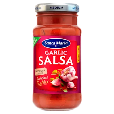 Deze medium pikante saus met grote stukken tomaat en de smaak van knoflook, tomaat, ui en chili is onmisbaar bij verschillende Tex Mex gerechten.