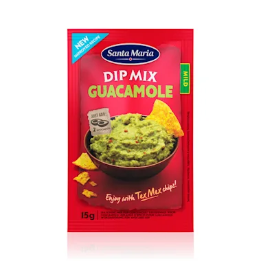 Dip mix guacamole Een klassiek bijgerecht dat bij alle Tex Mex-gerechten past. 2 avocado's rijp 1 zakje Santa Maria Dip Mix Guacamole Plet de avocado's en meng ze met de kruidenmix. Laat 10 minuten staan. Past bij alle Tex Mex-gerechten. Tip! Meng met 100 ml zure room voor een romige guacamole. Just add: 2 avocados