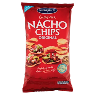 Santa Maria Nacho Chips original zijn ronde, stevige mais-chips en door deze vorm ideaal te eten als dipper in combinatie met Chunky salsa of chili con carne. Tevens ook goed te gebruiken in combinatie met guacamole, zure room en kaas uit de oven.