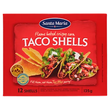 Deze taco's zijn de ideale basis voor Mexicaanse of Tex Mex gerechten. Taco's zijn glutenvrije knapperige gefrituurde maïstortilla's ideaal om te vullen met vlees of vis gekruid met Santa Maria Taco kruidenmix.