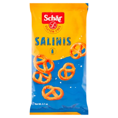 Glutenvrije, gezouten pretzelsnacks. Speciaal bereid voor personen met een glutenintolerantie.