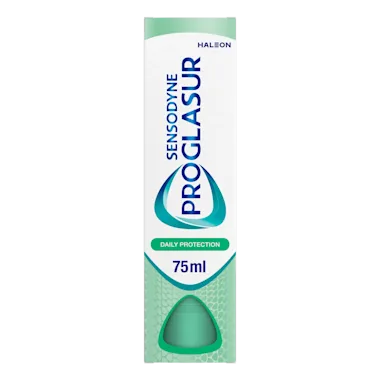 Gezonde witte tanden beginnen met sterk tandglazuur. Zuren in de dagelijkse voeding kunnen ervoor zorgen dat de mineralen aan het glazuuroppervlak worden onttrokken en het tandglazuur uiteindelijk slijt. Doordat het tandglazuur dunner wordt, wordt de laag eronder zichtbaar. Tanden lijken hierdoor dof, geel en het kan leiden tot gevoelige tanden. Sensodyne Proglasur heeft een geavanceerde formule die helpt verzwakt tandglazuur te versterken en te verharden voor gezonde sterke tanden.