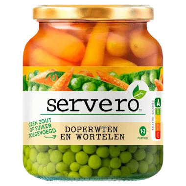 Servero Doperwten en Wortelen zijn perfect voor een verantwoorde maaltijd! Gemaakt van natuurlijke ingrediënten zonder toegevoegd zout of suiker. Binnen no-time een heerlijke maaltijd op tafel.