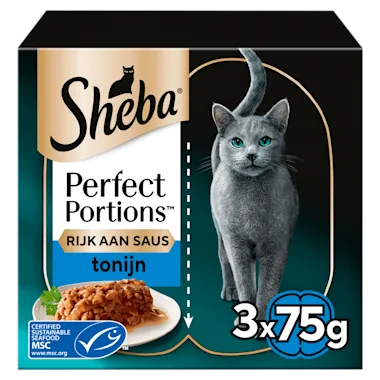Met de nieuwe SHEBA® PERFECT PORTIONS™ is het gemakkelijk om je kat te verwennen met de smaak waar ze van houdt, gemaakt van kwalitatief hoogwaardige ingrediënten, vers geserveerd wanneer gewenst. Breek, open & serveer voor een probleemloze verse maaltijd zonder etensresten. SHEBA® PERFECT PORTIONS™ is gemaakt van hoogwaardige ingrediënten en zonder kunstmatige toevoegingen. 100% van de gebruikte vis is afkomstig van duurzame visserij.