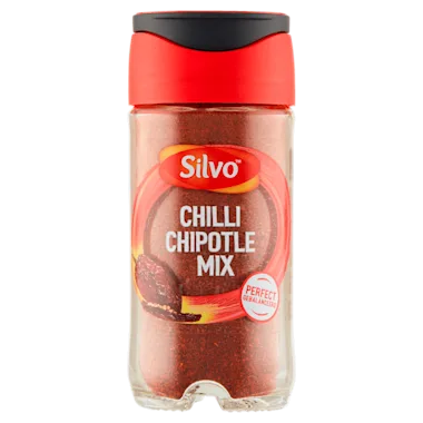 specerijen 97,3% (chipotle chili peper 38,5%, gerookt paprikapoeder, chilipeper, komijn, gedroogde knoflook), oregano, zout, totaal gehalte aan kruiden en specerijen: 98,6%