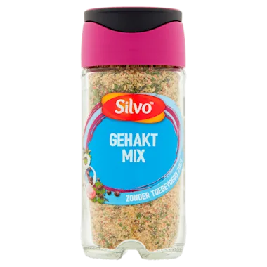 Toepassing: 2½ volle eetlepels (= 10 g) kruidenmix, 1 ei en 2 verkruimelde (zoutloze) beschuiten door 500 g gehakt kneden en bereiden zoals u gewend bent.