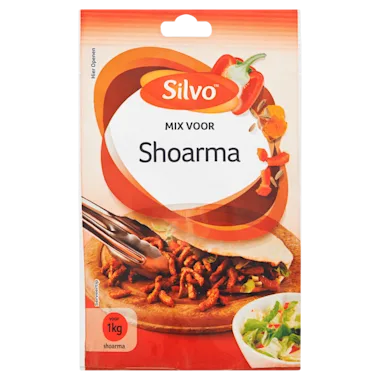 Bereidignswijze .1 kg in reepjes gesneden varkensvlees gelijkmatig met de mix bestrooien. . Goed door elkaar mengen en 15 minuten laten intrekken. . Boter of bakproduct verwarmen in een pan en de vleesreepjes ca 8 minuten bakken tot ze bruin en gaar zijn. . Geen zout of peper toevoegen. Tip . Lekker met een pitabroodje met ui, rode paprika en knoflooksaus en een salade van cherrytomaatjes met een snufje Silvo bieslook.