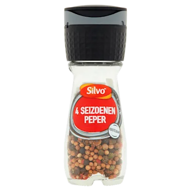 zwarte peper 38%, korianderzaad, piment, roze peper 9%, witte peper 9%, groene peper, totaal gehalte aan specerijen: 100%