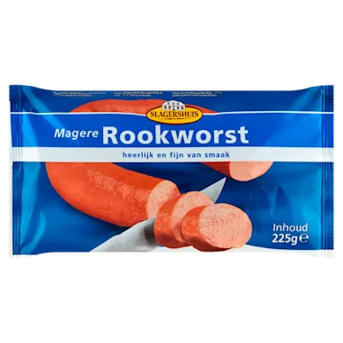 Rookworst is een traditioneel Nederlands product. In dit geval is er sprake van een collageen darm en is het product buiten de koeling houdbaar. Rookworst wordt veelal gegeten bij stamppotten, zoals boerenkool en zuurkool, maar is ook heerlijk als snack! Aan deze variant is een lager percentage varkensspek toegevoegd, waardoor het product minder vet is dan de reguliere variant en toegankelijker wordt voor een bredere doelgroep.