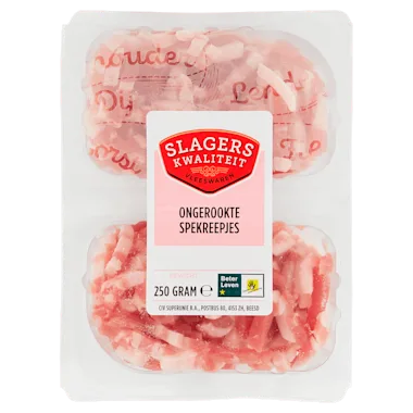 ingrediënten :95% varkensvlees*, zout, zuurteregelaar: e326, antioxidant: e301, conserveermiddel: e250/e262, specerijextracten (zwarte peper, nootmuskaat, jeneverbes).