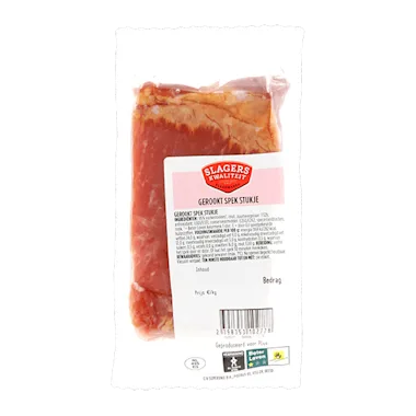 ingrediënten :96% varkensvlees*, zuurteregelaar: e326, zout, natuurlijk aroma, specerijextract (zwarte peper, jeneverbes, nootmuskaat), conserveermiddel: e250/e261, antioxidant: e301, rook.