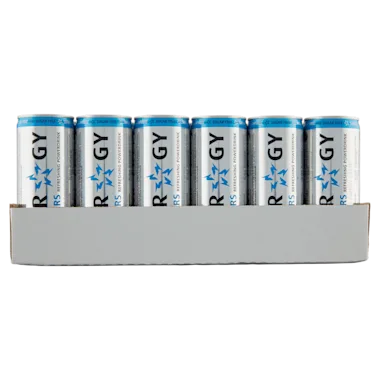 Ingrediënten :Koolzuurhoudend water, voedingszuur: citroenzuur, zuurteregelaar: E331, aroma, glucuronolacton, zoetstof: E950/E951*/E952, 0,032% cafeïne, 0,03% taurine, inositol, stabilisator: E415, kleurstof: E150d, vitamines (riboflavine, niacine, pantotheenzuur, vitamine B6, vitamine B12).