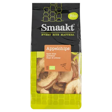 Ingrediënten: Gedroogde appelplakjes*, *=biologisch.