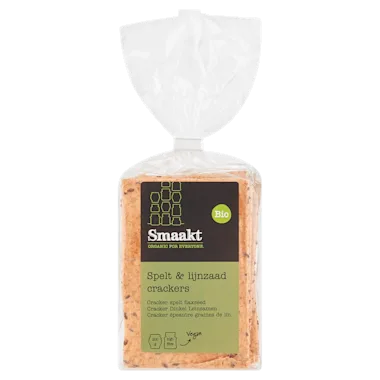 Ingrediënten: Spelt(TARWE)bloem* 33%, volkoren spelt(TARWE)meel* 27%, water, margarine* (ongehard plantaardig palm en kokosvet, plantaardige zonnebloemolie, water, antioxidant: citroenzuur, emulgator: lecithinen)*, lijnzaad* 5%, HAVERvlokken*, zout, gist*, * =biologisch.