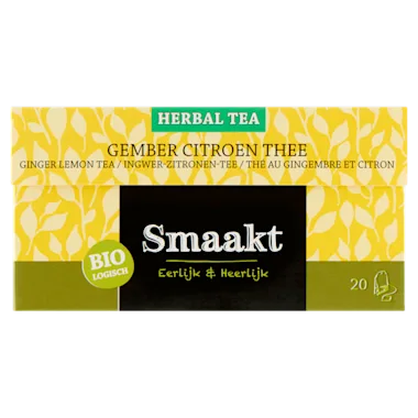 Ingrediënten: Gember* 40,5%, zoethout* 12%, citroengras* 12%, pepermunt*, citroenschil* 9%, zwarte peper* hibiscus*, natuurlijk citroen aroma 2,5%, *=biologisch.