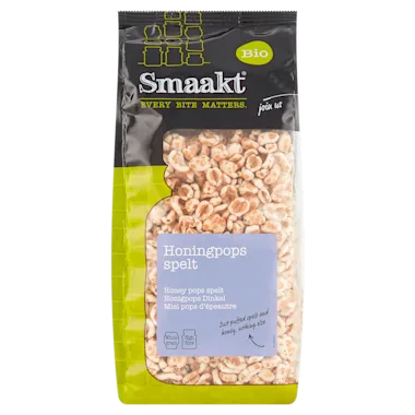 Ingrediënten: Gepofte volkoren spelt(TARWE)* 70%, honing* 30%, * =biologisch