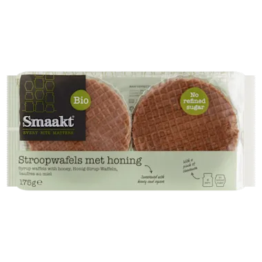 Ingrediënten: TARWEsiroop* 31%, TARWEbloem*, plantaardige vetten* (palm- en zonnebloemolie)*, honing* 8,5%, agavesiroop* 5%, zonnebloemproteïne*, TARWEzemelen*, zeezout, emulgator: zonnebloemlecithine*, rijsmiddel: natriumcarbonaten, kaneel* 0,15%, citroen*, *=biologisch