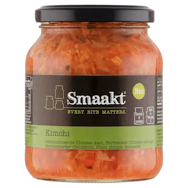 Ingrediënten: Chinese kool* 26%, witte kool* 24%, wortel* 17%, water, radijs*, ui*, tomaat* (uit concentraat)*, zeezout, gember*, rode paprika*, rode peper*, knoflook*, *=biologisch