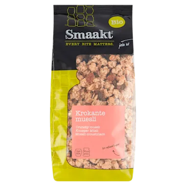 Voeg 2 eetlepels Krokante muesli toe aan yoghurt, melk of kwark.