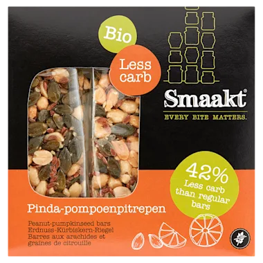 Ingrediënten: PINDA'S (AARDNOTEN)* 44%, pompoenpitten* 25%, inuline*, lijnzaad*, citroenolie* 0,9%, zout, *= biologisch.