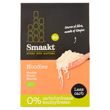 De inhoud van deze verpakking is gemaakt van plantaardige vezels uit de konjac plant in de vorm van noodles.