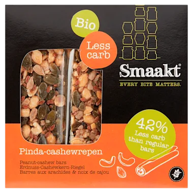 Ingrediënten: PINDA'S (AARDNOTEN)* 26%, pompoenpitten* 25%, inuline*, zonnebloempitten*, CASHEWNOTEN* 8%, lijnzaad*, kaneel* 0,2%, zeezout, *=biologisch